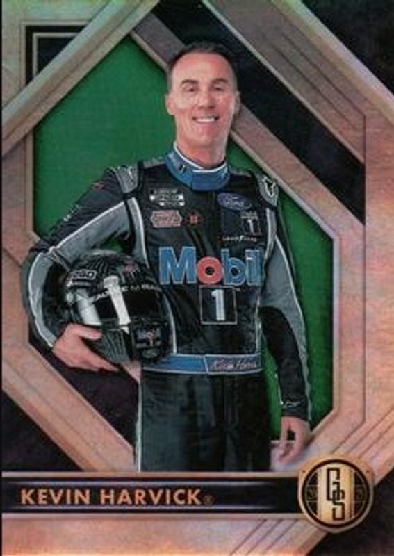 The Kevin Harvick 2021 Chronicles NASCAR #10 Gold Standard - Green card is 1 of 155 Kevin Harvick's card variations in the 2021 Chronicles NASCAR set being tracked by Sports Card Investor, including Base, Blue /199, Red /99, Purple /25, and Gold /10.