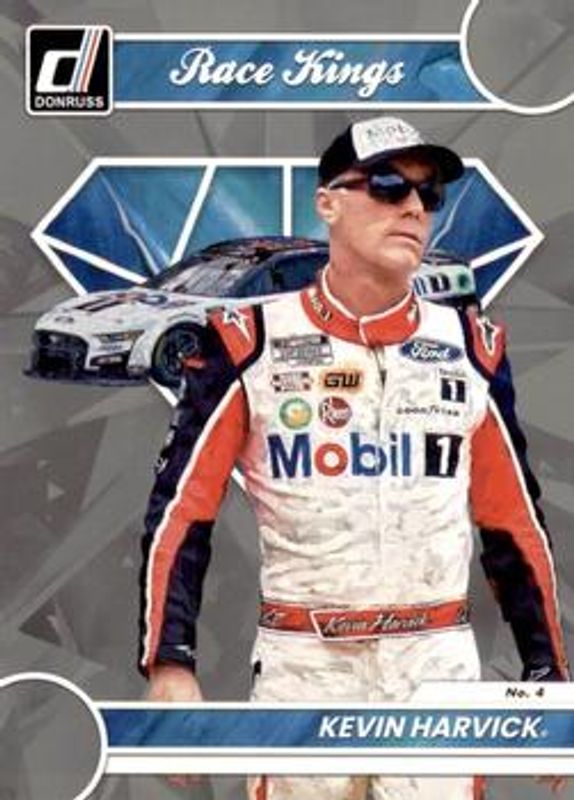 The Kevin Harvick 2023 Donruss NASCAR #4 Silver card is 1 of 165 Kevin Harvick's card variations in the 2023 Donruss NASCAR set being tracked by Sports Card Investor, including #4 Base, #57 Base, #142 Base, #116 Base, and #4 Carolina Blue.