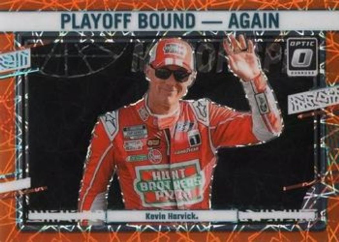 The Kevin Harvick 2024 Donruss NASCAR #175 Optic Orange Velocity card is 1 of 137 Kevin Harvick's card variations in the 2024 Donruss NASCAR set being tracked by Sports Card Investor, including #175 Base, #23 Base, #88 Base, #88 Optic, and #175 Optic.
