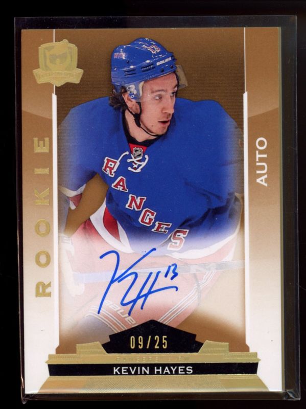 The Kevin Hayes 2014 Upper Deck The Cup #154 Gold Spectrum Autographs /25 Rookie card is 1 of 48 Kevin Hayes' card variations in the 2014 Upper Deck The Cup set being tracked by Sports Card Investor, including Base /249, Gold /10, Gold Foil /10, Red /3, and Black Foil /1.