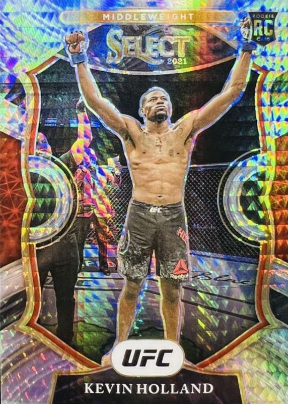 This card is 1 of 50 Kevin Holland's card variations in the 2021 Select UFC set being tracked by Sports Card Investor, including Concourse, Concourse Disco, Concourse Scope, Concourse Silver, and Concourse Tri-Color.