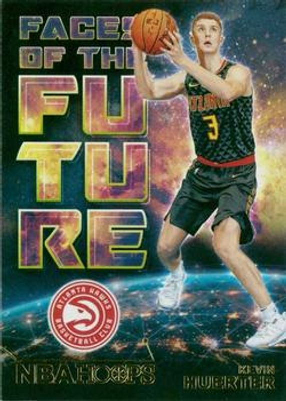 The Kevin Huerter 2018 Hoops #19 Faces of the Future - Holo Rookie card is 1 of 30 Kevin Huerter's card variations in the 2018 Hoops set being tracked by Sports Card Investor, including Base, Red Backs, Premium Boxed Set /199, Blue, and Faces of the Future.