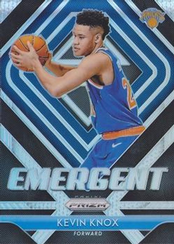 The Kevin Knox 2018 Prizm #9 Emergent - Silver Rookie card is 1 of 51 Kevin Knox's card variations in the 2018 Prizm set being tracked by Sports Card Investor, including Base, Choice Blue Yellow Green, Fast Break, Green, and Red Ice.