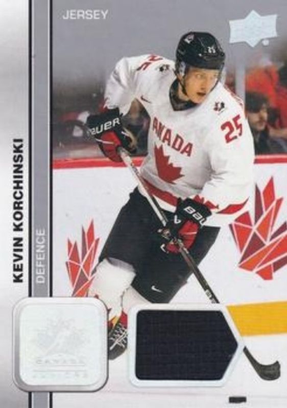 The Kevin Korchinski 2023 Upper Deck Team Canada Juniors #18 Jerseys Rookie card is 1 of 87 Kevin Korchinski's card variations in the 2023 Upper Deck Team Canada Juniors set being tracked by Sports Card Investor, including #72 Base, #121 Base, #18 Base, #121 Clear Cut, and #72 Clear Cut.