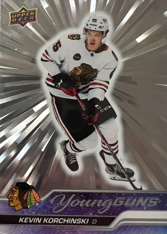 The Kevin Korchinski 2023 Upper Deck #486 Young Guns - Outburst Silver Rookie card in Raw condition has moved down -$2.10 (-24.4%) in the last 30 days and was last sold for $6.50 .