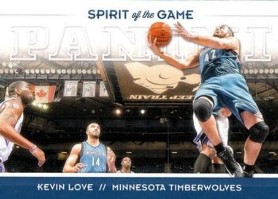 The Kevin Love 2012 Panini #8 Spirit of the Game card is 1 of 10 Kevin Love's card variations in the 2012 Panini set being tracked by Sports Card Investor, including Base, Gold Knight, Silver Knight, Black Knight /10, and All-Panini.
