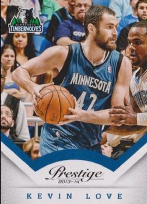 The Kevin Love 2013 Prestige #74 Base card is 1 of 13 Kevin Love's card variations in the 2013 Prestige set being tracked by Sports Card Investor, including Bonus Shots Blue, Bonus Shots Red, Bonus Shots Silver, Bonus Shots Gold /10, and Bonus Shots Green /5.