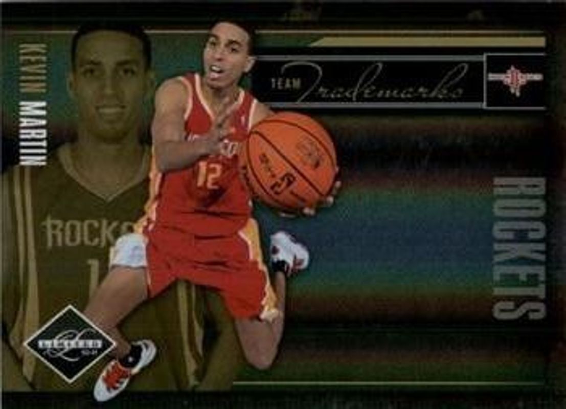 The Kevin Martin 2010 Limited #13 Team Trademarks - Gold Spotlight /24 card is 1 of 12 Kevin Martin's card variations in the 2010 Limited set being tracked by Sports Card Investor, including Base /199, Silver Spotlight /149, Gold Spotlight /49, Platinum Spotlight /1, and Banner Season /149.