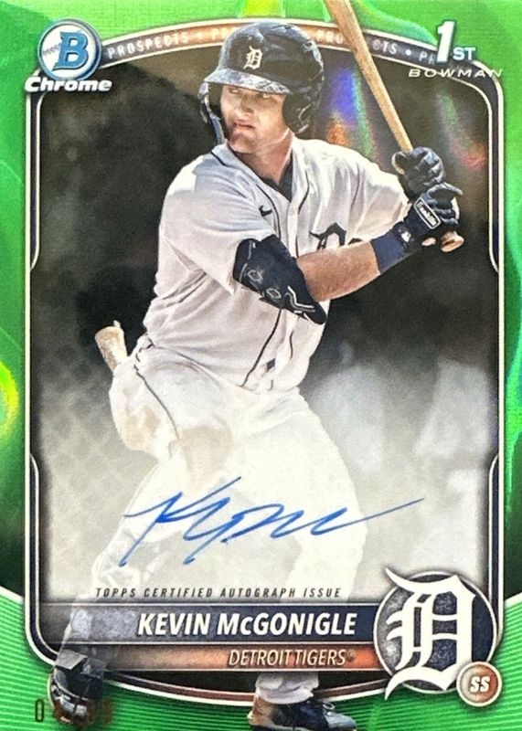 2025 BOWMAN KEVIN MCGONIGLE 1ST CHROME PROSPECT AUTO GREEN LAVA REFRACTOR /99 RC