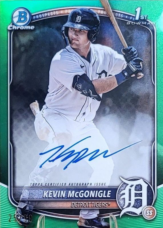 2025 Bowman Kevin McGonigle Chrome Auto Green Refractor 1st #/99 Tigers