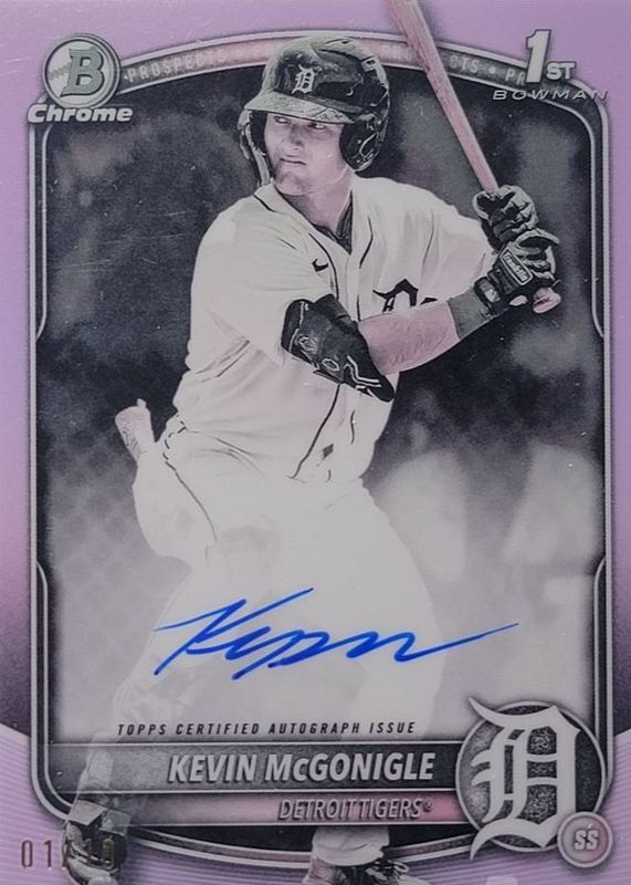 Auctions Ending Soon for Kevin McGonigle 2025 Bowman #CPA-KM Chrome Prospect Auto - Pearl Refractor /10 (1st) RAW