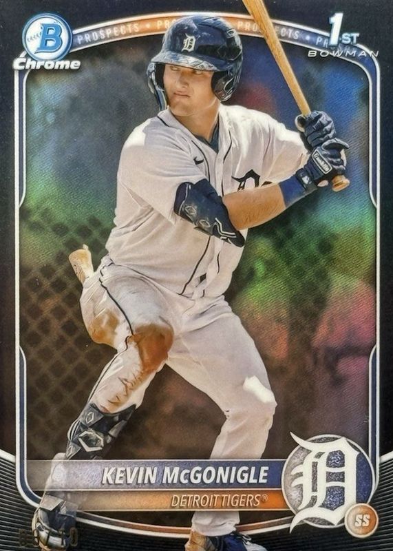 This card is 1 of 109 Kevin McGonigle's card variations in the 2025 Bowman set being tracked by Sports Card Investor, including Chrome Prospects (1st), Prospects (1st), Chrome Prospects - Gumball Refractor (1st), Chrome Prospects - Mini Diamond Refractor (1st), and Chrome Prospects - Peanuts Refractor (1st).