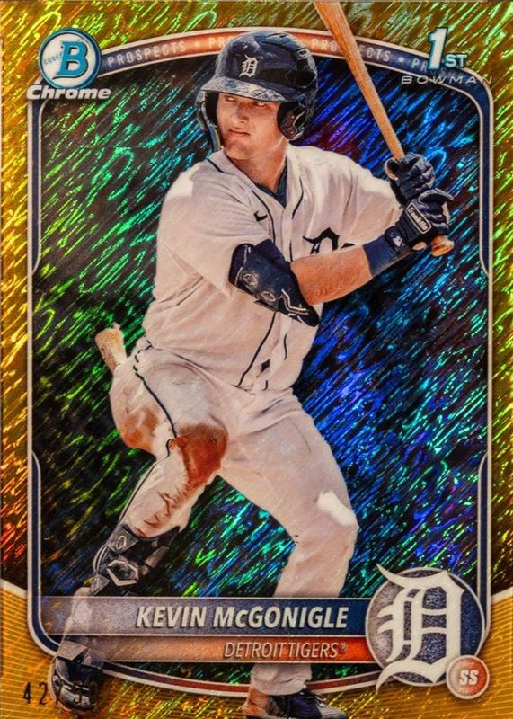 Auctions Ending Soon for Kevin McGonigle 2025 Bowman #BCP-79 Chrome Prospects - Gold Shimmer Refractor /50 (1st) RAW