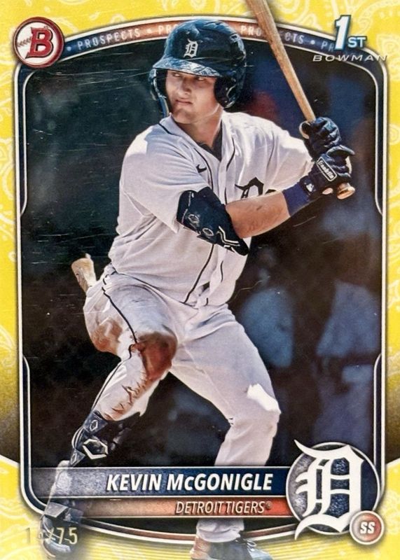 2025 Bowman Kevin McGonigle Yellow Pattern Border /75 1st Prospect Tigers HD2