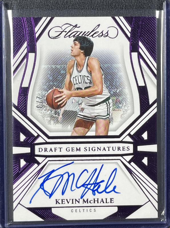 The Kevin McHale 2023 Flawless #DGS-KMH Draft Gem Signatures - Amethyst /3 card is 1 of 28 Kevin McHale's card variations in the 2023 Flawless set being tracked by Sports Card Investor, including Draft Gem Signatures /25, Enshrined Signatures /25, Flawless Penmanship /25, Legendary Scripts /25, and Draft Gem Signatures - Ruby /15.