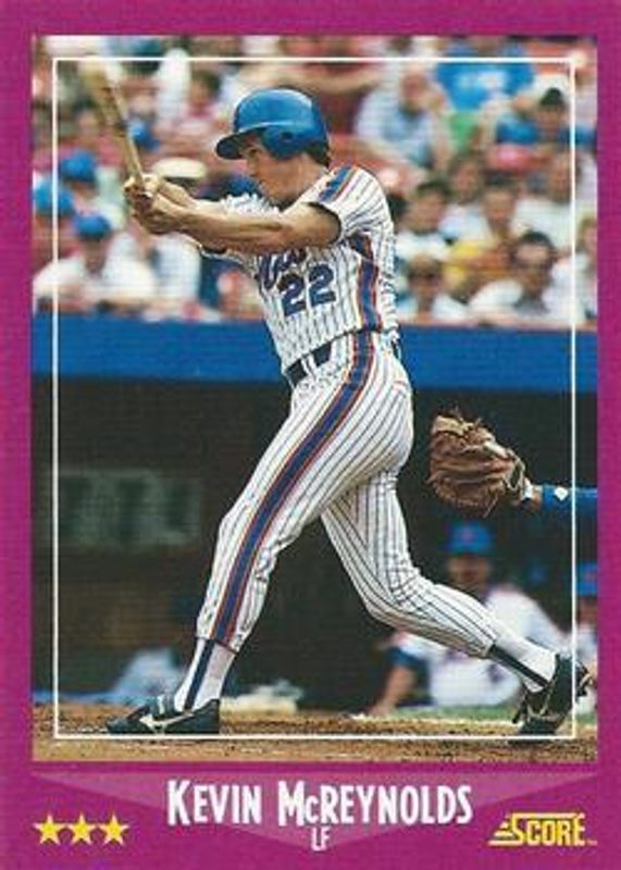The Kevin McReynolds 1988 Score #21 Glossy card is 1 of 2 Kevin McReynolds' card variations in the 1988 Score set being tracked by Sports Card Investor, including Base.