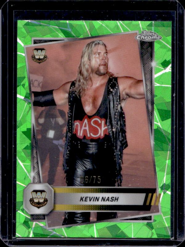 The Kevin Nash 2025 Topps Chrome WWE Sapphire Edition #184 Base Chrome - Green Refractor /75 card is 1 of 7 Kevin Nash's card variations in the 2025 Topps Chrome WWE Sapphire Edition set being tracked by Sports Card Investor, including Base Chrome, Base Chrome - Gold Refractor /50, Base Chrome - Orange Refractor /25, Base Chrome - Purple Refractor /10, and Base Chrome - Red Refractor /5.