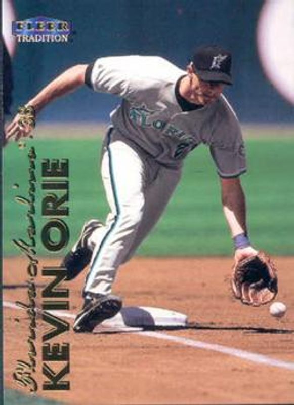 The Kevin Orie 1999 Fleer Tradition #301 Base card is 1 of 4 Kevin Orie's card variations in the 1999 Fleer Tradition set being tracked by Sports Card Investor, including Millennium, Warning Track Collection, and Starting 9 /9.