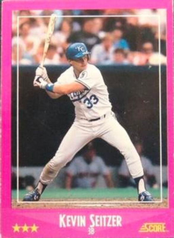 The Kevin Seitzer 1988 Score #6 Promos card is 1 of 3 Kevin Seitzer's card variations in the 1988 Score set being tracked by Sports Card Investor, including Base, and Glossy.