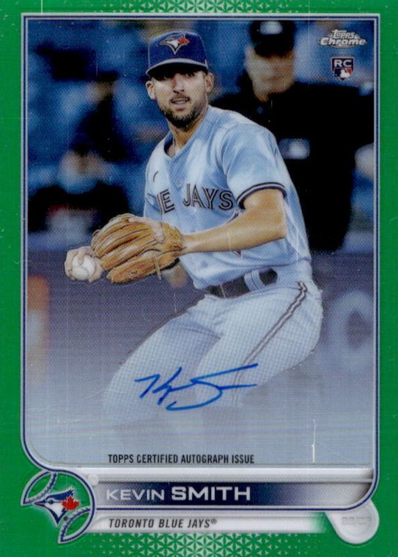 This card is 1 of 15 Kevin Smith's card variations in the 2022 Topps Chrome set being tracked by Sports Card Investor, including Rookie Auto, Rookie Auto - Refractor /499, Rookie Auto - Purple Speckle Refractor /299, Rookie Auto - Purple Refractor /250, and Rookie Auto - Aqua Wave Refractor /199.