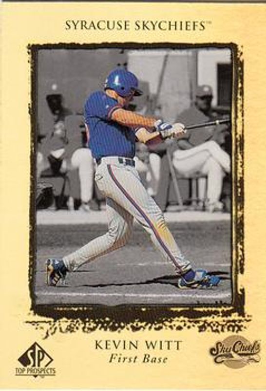 The Kevin Witt 1999 SP Top Prospects #123 Base Rookie card is 1 of 2 Kevin Witt's card variations in the 1999 SP Top Prospects set being tracked by Sports Card Investor, including President's Edition /10.