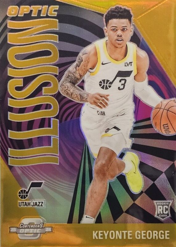 The Keyonte George 2023 Contenders Optic #17 Optic Illusion - Gold /10 Rookie card in Raw condition has not changed in price in the last 30 days and was last sold for $36.00 .