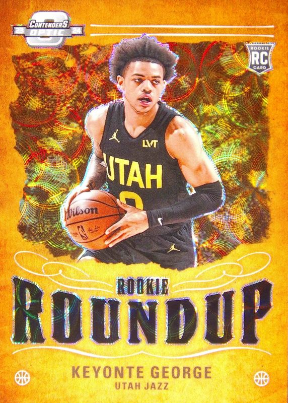 The Keyonte George 2023 Contenders Optic #20 Rookie Roundup - International Black & White /25 card in Raw condition has not changed in price in the last 30 days and was last sold for $12.50 .