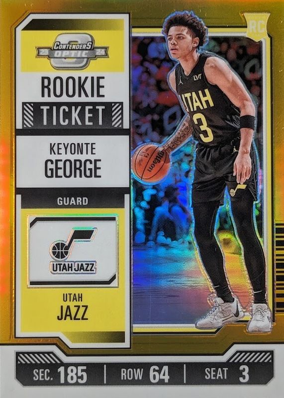 The Keyonte George 2023 Contenders Optic #5 Rookie Ticket - International Gold /10 card in Raw condition has not changed in price in the last 30 days and was last sold for $66.00 .