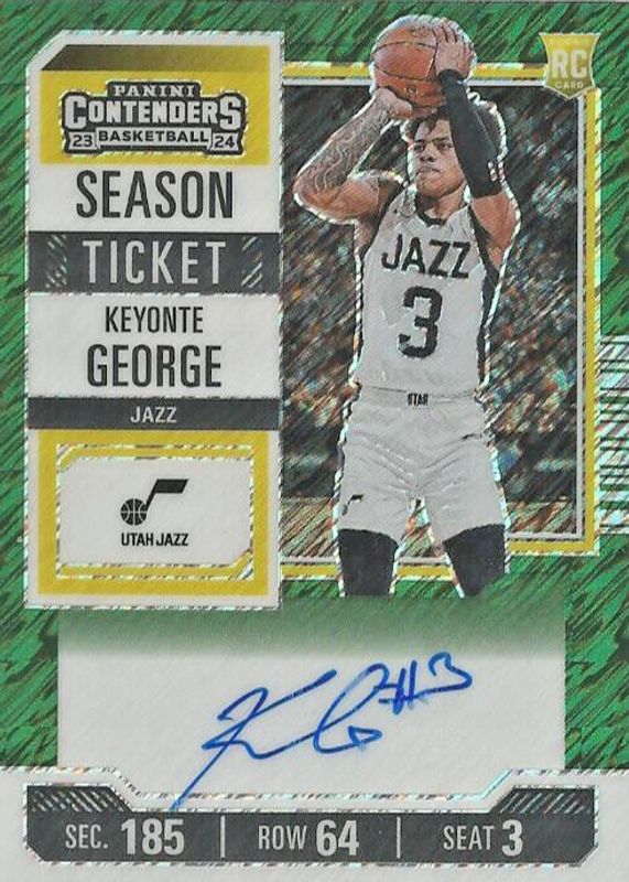 2023-24 CONTENDERS AUTO KEYONTE GEORGE SEASON TICKET GREEN SHIMMER PREMIUM #144