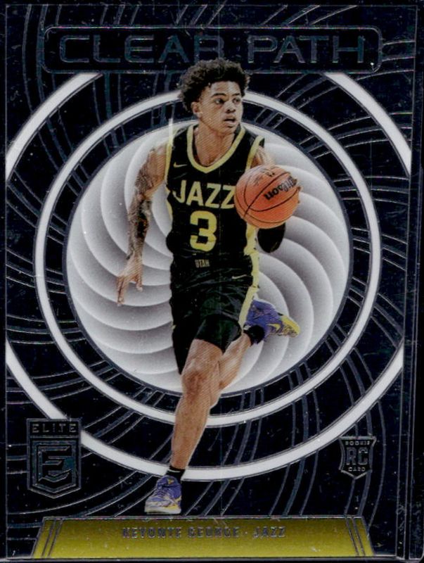 The Keyonte George 2023 Elite #3 Clear Path Rookie card is 1 of 63 Keyonte George's card variations in the 2023 Elite set being tracked by Sports Card Investor, including Base, Aspirations (/97), International, International Hyper Red & Green, and Orange.