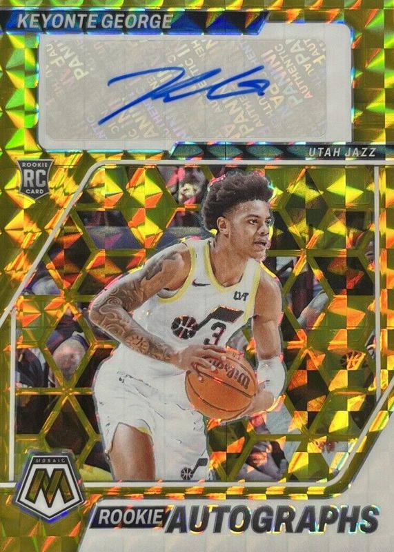 The Keyonte George 2023 Mosaic #RA-KEY Rookie Autographs - Gold /10 card in Raw condition has not changed in price in the last 30 days and was last sold for $161.50 .