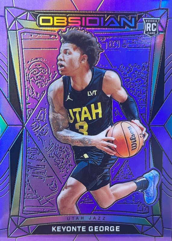 2023-24 Panini Obsidian -- Electric Etch Purple Flood #34 Keyonte George /49