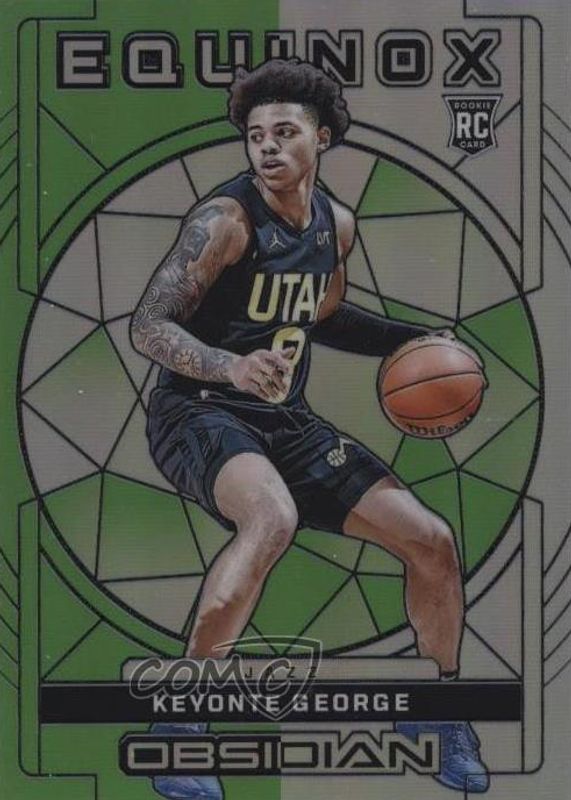 The Keyonte George 2023 Obsidian #34 Equinox - Electric Etch Green Flood /25 Rookie card in Raw condition has not changed in price in the last 30 days and was last sold for $13.50 .