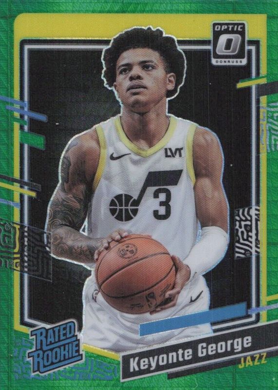 L901 KEYONTE GEORGE RC 2023-24 OPTIC GREEN HYPER PRIZM RATED ROOKIE JAZZ #223