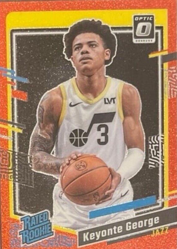 The Keyonte George 2023 Optic #223 Red Glitter /75 Rookie card in Raw condition has moved up $15.50 (+83.8%) in the last 30 days and was last sold for $34.00 .