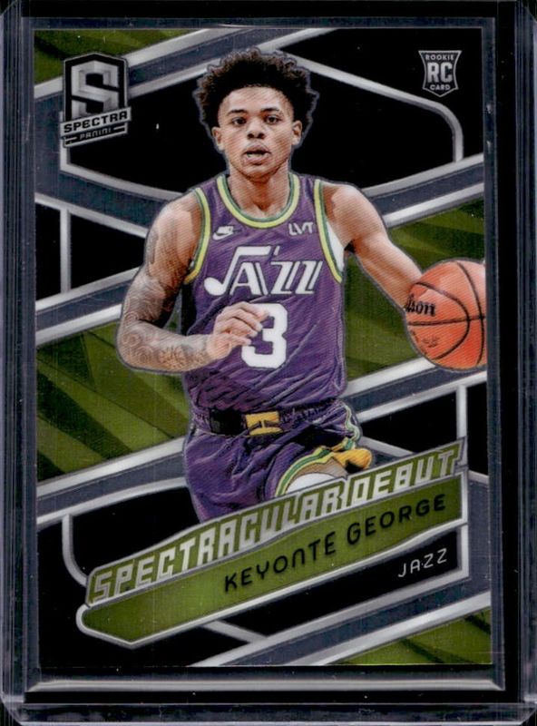 The Keyonte George 2023 Spectra #182 Base Rookie card is 1 of 115 Keyonte George's card variations in the 2023 Spectra set being tracked by Sports Card Investor, including #135 Base, #201 Base, #182 Spectacular Debut, #201 International, and #182 International.