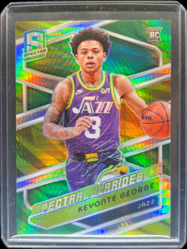 The Keyonte George 2023 Spectra #182 International Green /75 Rookie card is 1 of 115 Keyonte George's card variations in the 2023 Spectra set being tracked by Sports Card Investor, including #135 Base, #182 Base, #201 Base, #182 Spectacular Debut, and #201 International.