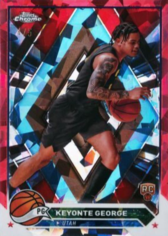 The Keyonte George 2023 Topps Chrome Sapphire Edition #153 Red /5 Rookie card in Raw condition has not changed in price in the last 30 days and was last sold for $31.00 .