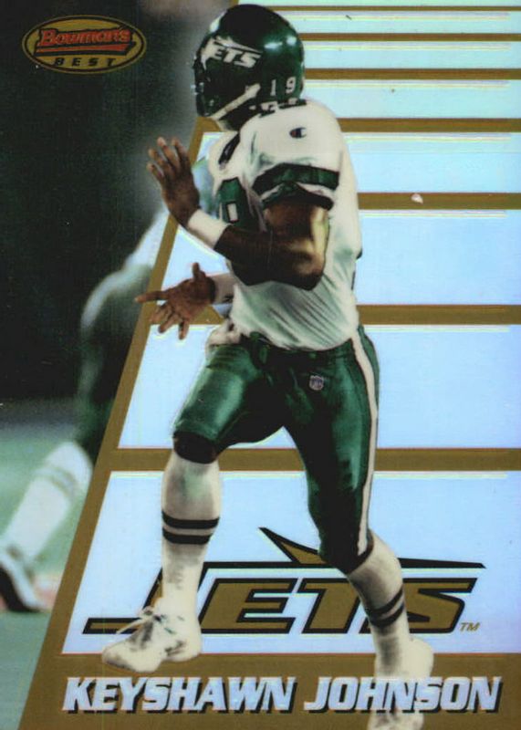 The Keyshawn Johnson 1996 Bowman's Best #180 Refractor Rookie card in Raw condition has moved up $0.54 (+12.1%) in the last 30 days and was last sold for $4.99 .