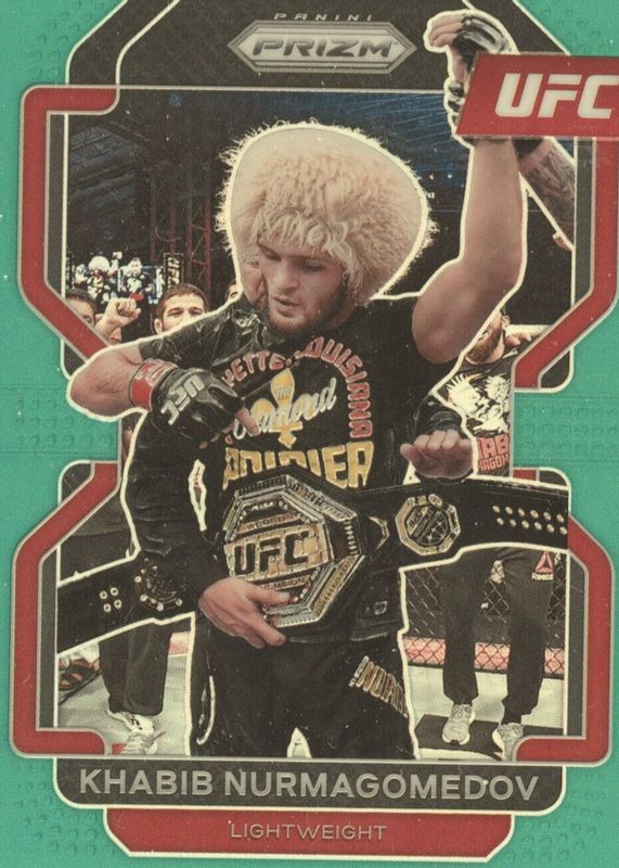 This card is 1 of 25 Khabib Nurmagomedov's card variations in the 2022 Prizm UFC set being tracked by Sports Card Investor, including Base, Green, Hyper, Ice, and Pink Ice.