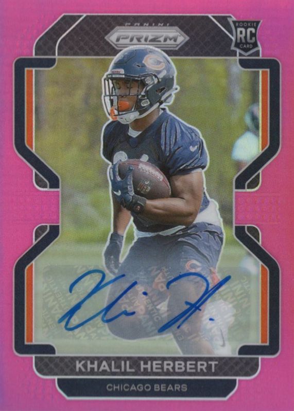 Khalil Herbert's Football cards are available in at least 3 sets. Khalil Herbert's biggest 7-day price movers are 2021 Prizm #425 Rookie Autographs - Pink, 2021 Prizm #425 Rookie Autographs - Blue Shimmer /5, and 2021 Prizm #425 Rookie Autographs - Red Shimmer /10.