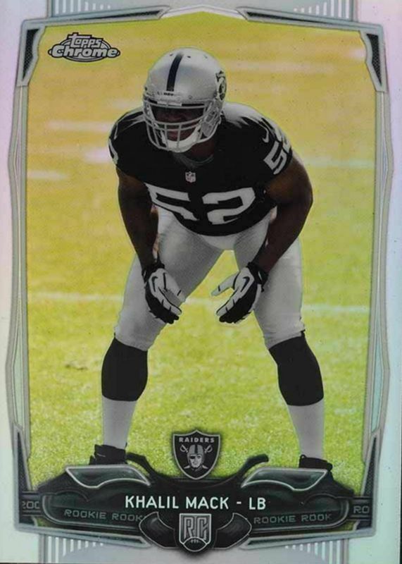 The Khalil Mack 2014 Topps Chrome #184 Refractor Rookie card in Raw condition has moved down -$0.01 (-0.4%) in the last 30 days and was last sold for $2.25 .
