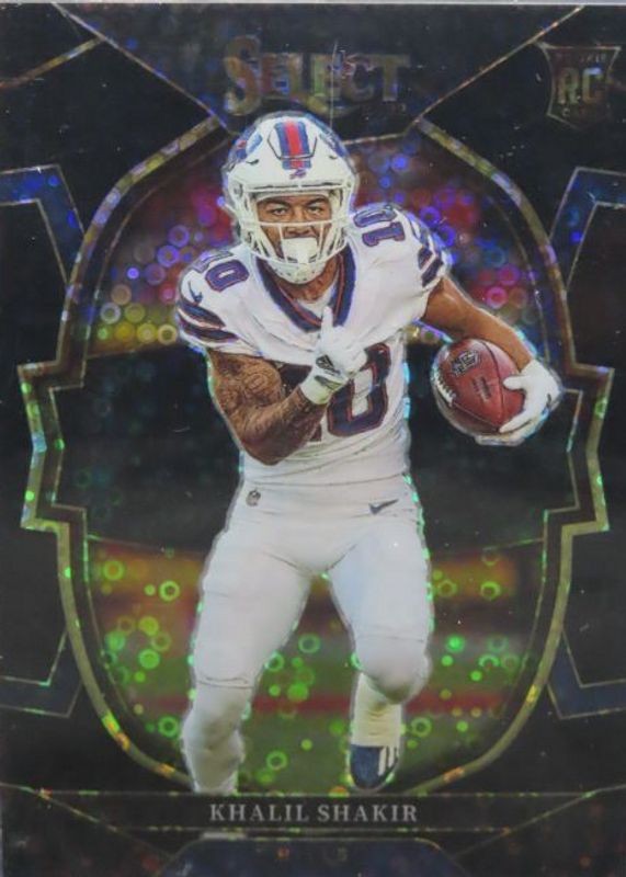 This card is 1 of 41 Khalil Shakir's card variations in the 2022 Select set being tracked by Sports Card Investor, including Concourse, Concourse Black & Green Die-Cut, Concourse Black & Red Die-Cut, Concourse Disco, and Concourse Green & Yellow Die-Cut.