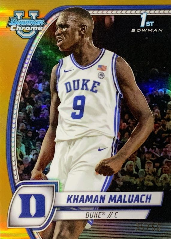 The Khaman Maluach 2024 Bowman Chrome University #46 Gold Refractor /50 (1st) card in Raw condition has not changed in price in the last 30 days and was last sold for $9.50 .