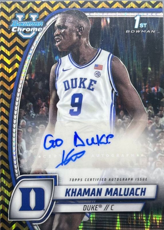 Khaman Maluach 2024 Bowman Chrome University #46 Prospect Auto - Black & Gold Stealth Refractor /24 (1st) RAW Price Guide