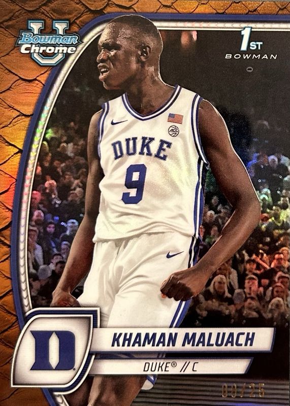 2024-25 Bowman U Chrome Khaman Maluach 1st Orange Reptilian #d /25 Duke