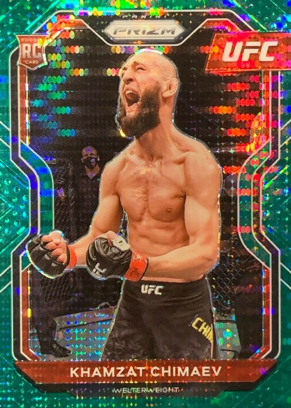 2021 Panini UFC Prizm Rookie Green Pulsar Prizm # 10/25 KHAMZAT CHIMAEV