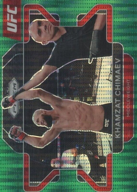 The Khamzat Chimaev 2022 Prizm UFC #94 Green Pulsar /25 card in Raw condition has not changed in price in the last 30 days and was last sold for $80.00 .