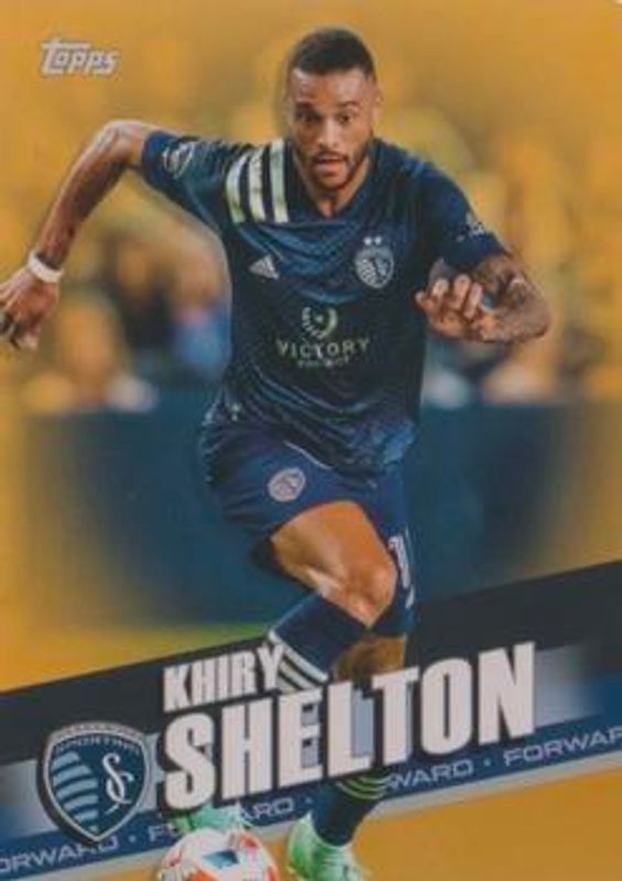 The Khiry Shelton 2022 Topps MLS #115 Gold /50 card is 1 of 9 Khiry Shelton's card variations in the 2022 Topps MLS set being tracked by Sports Card Investor, including Blue /99, Green /75, Icy Blue Foil /25, Orange /25, and Icy Black Foil /10.