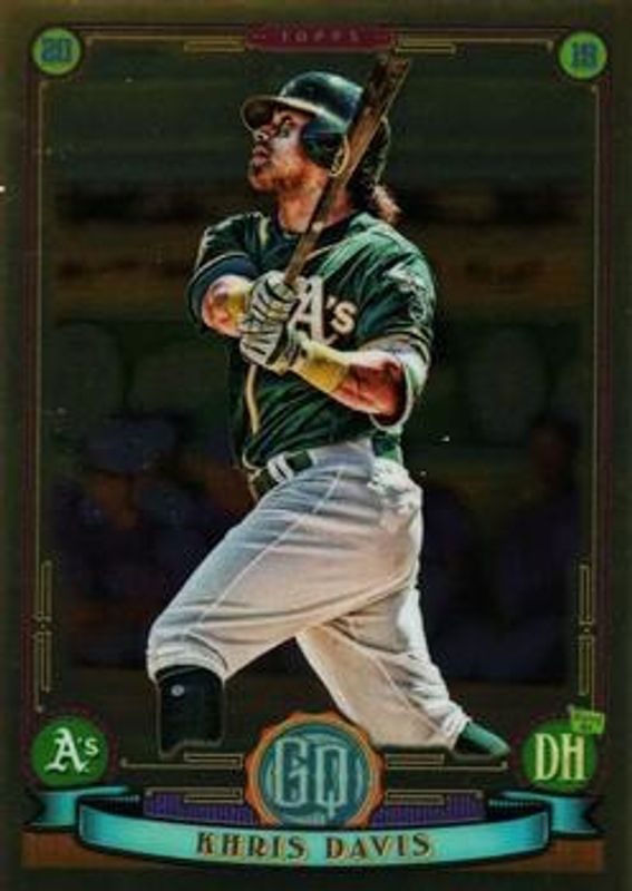 The Khris Davis 2019 Topps Gypsy Queen #3 Chrome Box Topper card is 1 of 40 Khris Davis' card variations in the 2019 Topps Gypsy Queen set being tracked by Sports Card Investor, including #3b Base, #3 Base, #3 Bazooka Back, #3 GQ Logo Swap, and #3b GQ Logo Swap.